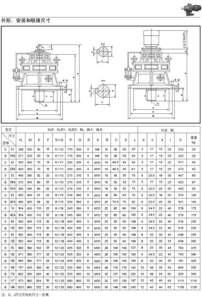 X . B擺線針輪減速機外型圖,安裝和聯(lián)結(jié)尺寸四 30