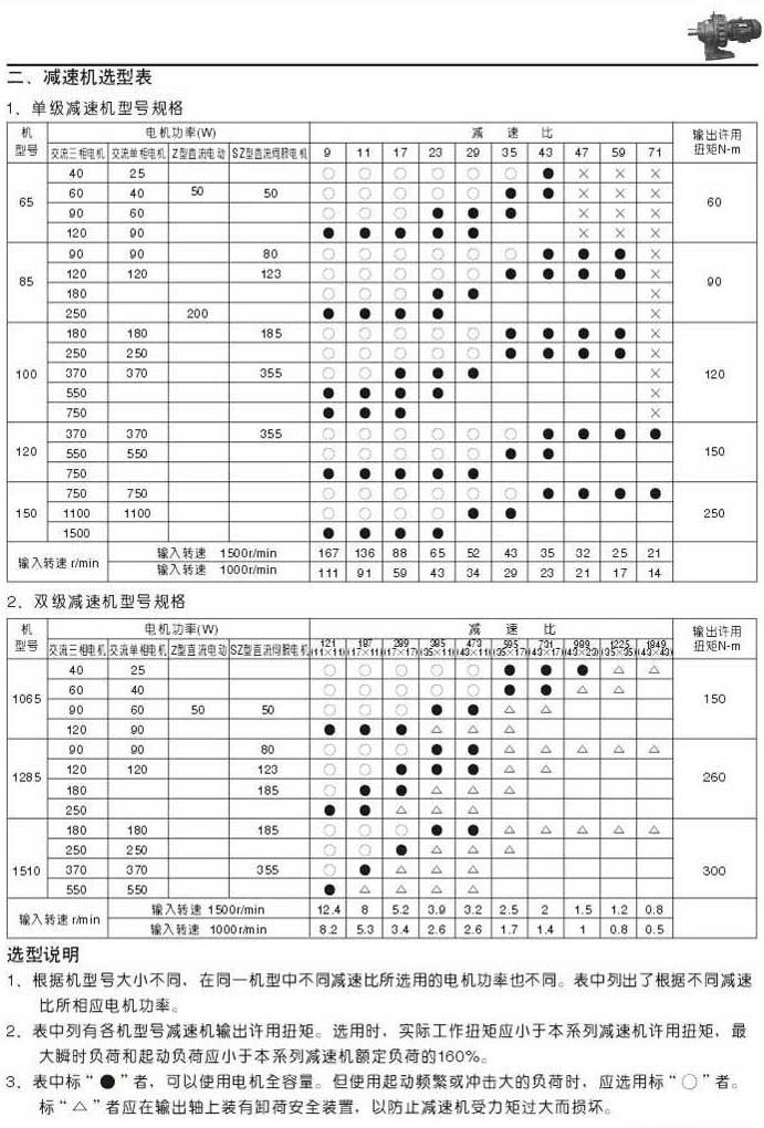 WB系列擺線針輪減速機(jī)選型表單級(jí)減速機(jī)型號(hào)規(guī)格表雙級(jí)減速機(jī)型號(hào)規(guī)格表選型說(shuō)明